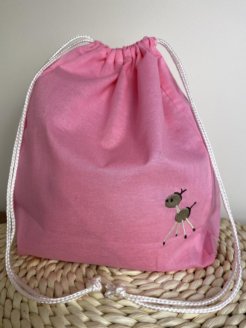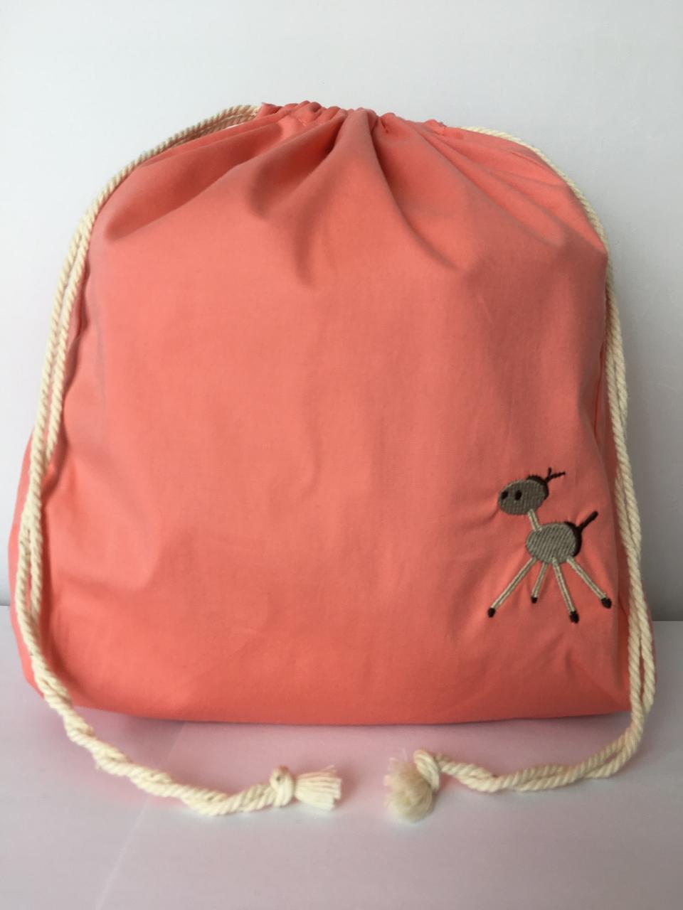 Riidest kott - mis sobib pidžaamakotiks, sussikotiks, trenniriiete kotiks, trennijalatsite kotiks (mahutab kuni suurus 41 jalatsid), võimalusi on palju. Kott on nägus ja praktiline. Koti mõõdud: